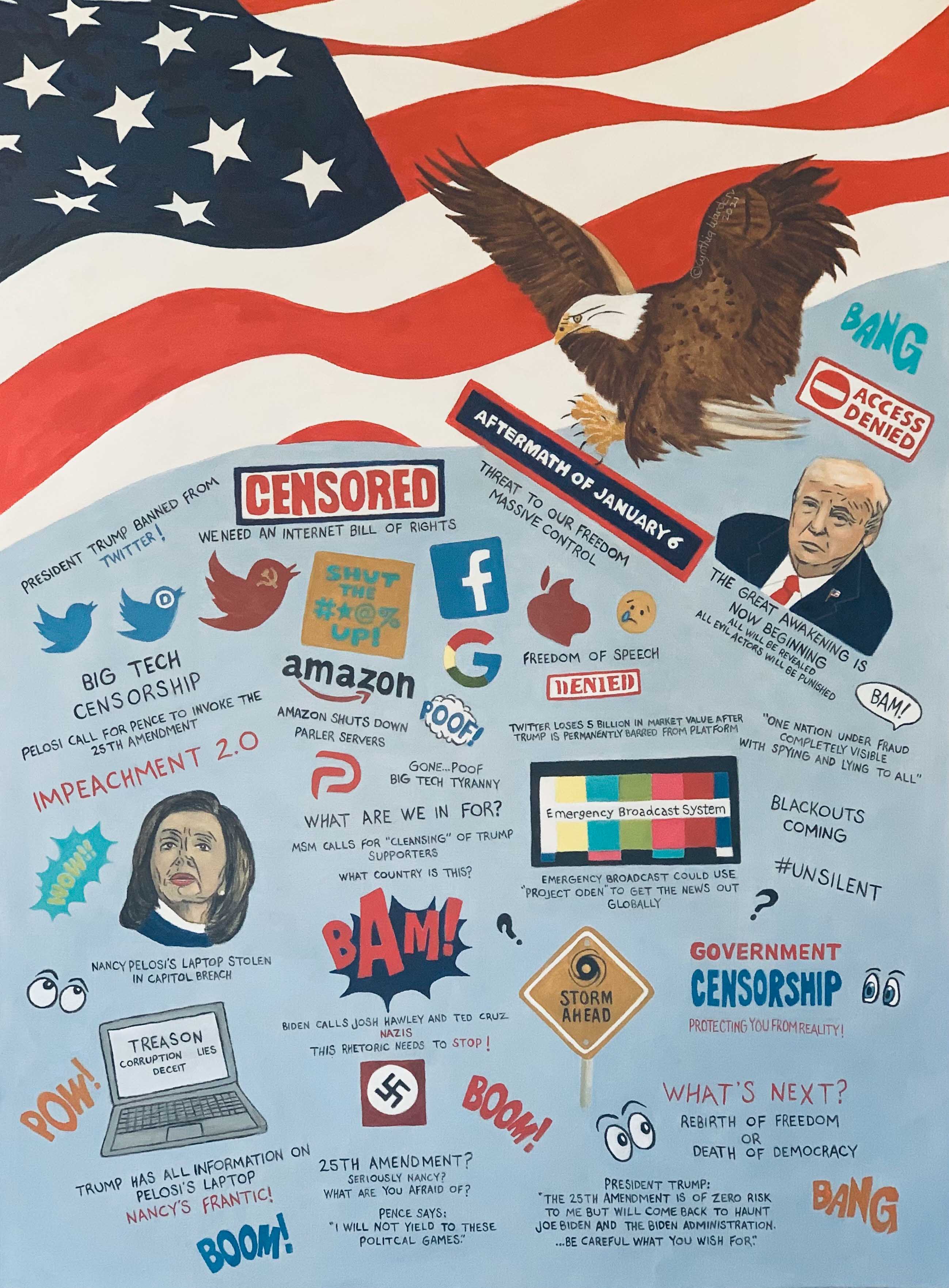 As the days after January 6th unfolded Big Tech began censoring Trump and banning him and other conservative voices from Facebook, Twitter, Parler and others as the gravity of what just happened to America was beginning to set in. Nancy Pelosi began calling for yet another Impeachment Trial for Trump. Pelosi also called for Pence to invoke the 25th Amendment. In the days leading up to the Inauguration of Biden, 25,000 National Guard troops surround the Capitol. Razor wire and fencing speak volumes. Was Biden elected freely and fairly or was he installed? America is now forever changed.