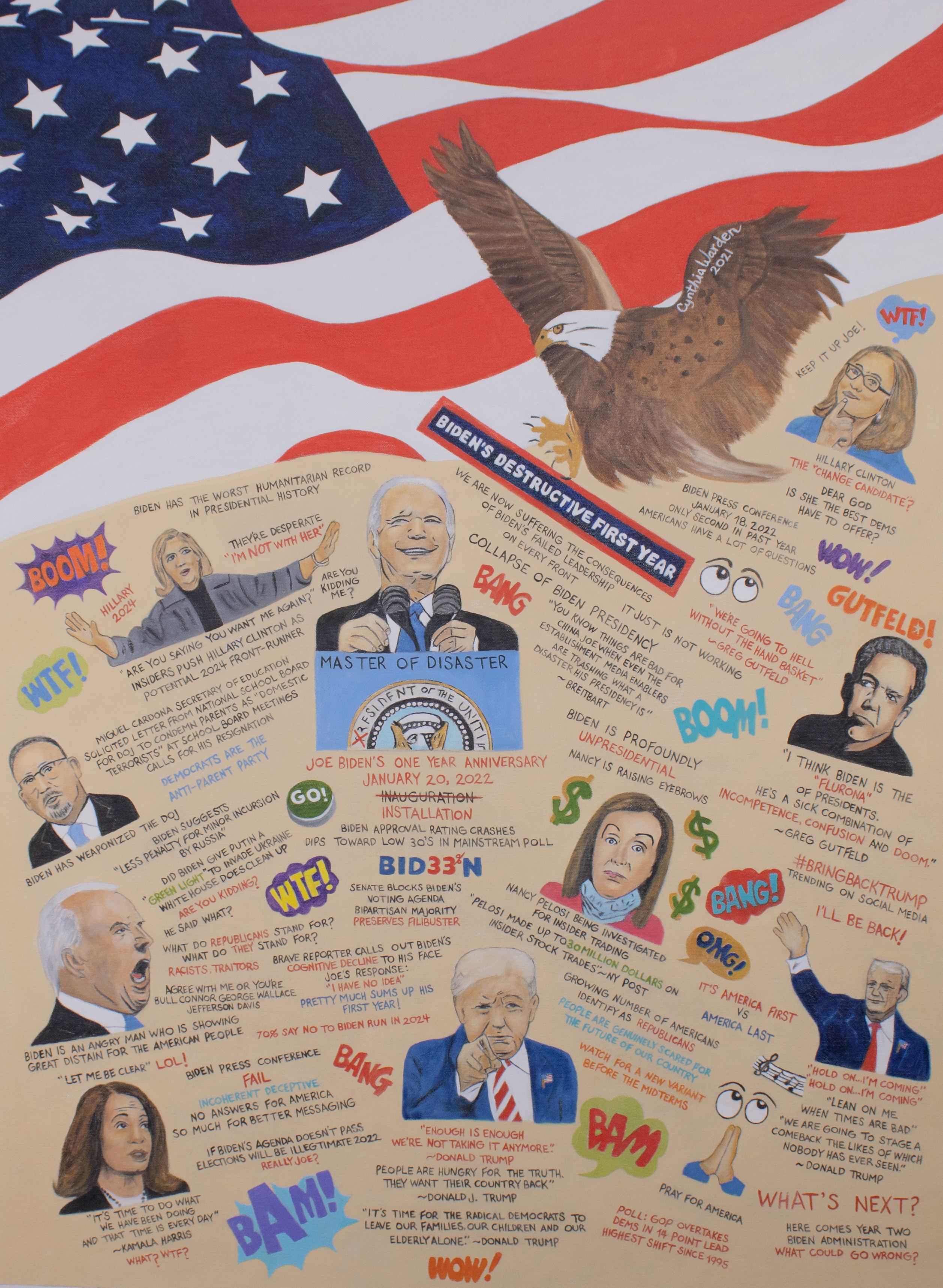 Once around the Sun and we are back where we began. Biden's first year is officially in the books. Biden's approval rating crashes as it dips into the low 30's. The American people see that this "Master of Disaster"is crushing the Nation. The Border is wide open creating the worst Humanitarian crisis in Presidential History. And now Democrats are touting out ole Hillarry as "The Change Candidate." Bidens has weponized the DOJ and FBI and created an environment of distrust with parents calling them "Domestic Terrorists" for challenging out of control school boards teaching CRT to their kids. Biden, in a speech when worried about Putin invading Ukraine suggested a lesser penalty of a "minor incursion"... are you kidding me. Biden always seems very angry toward the American people especially half the population who are Republicans. "The Great Divider" screams that Republicans are traitors and racists if they don't agree with his feckless policies. He calls them Bull Connor or George Wallace or Jefferson Davis yelling "What do Republicans stand for?" Even the main stream media are now question Biden, his administraton, do nothing Kamala who cant string a sentence and as Border Czar has never been to the border, their messaging could not be worse. Nancy Pelosi is being investigated for insider trading. Late night host Greg Gutfeld sumed it up this way...he said "I think Biden is the flurona of Presidents. He's a sick combination of incompetence, confusion and doom.