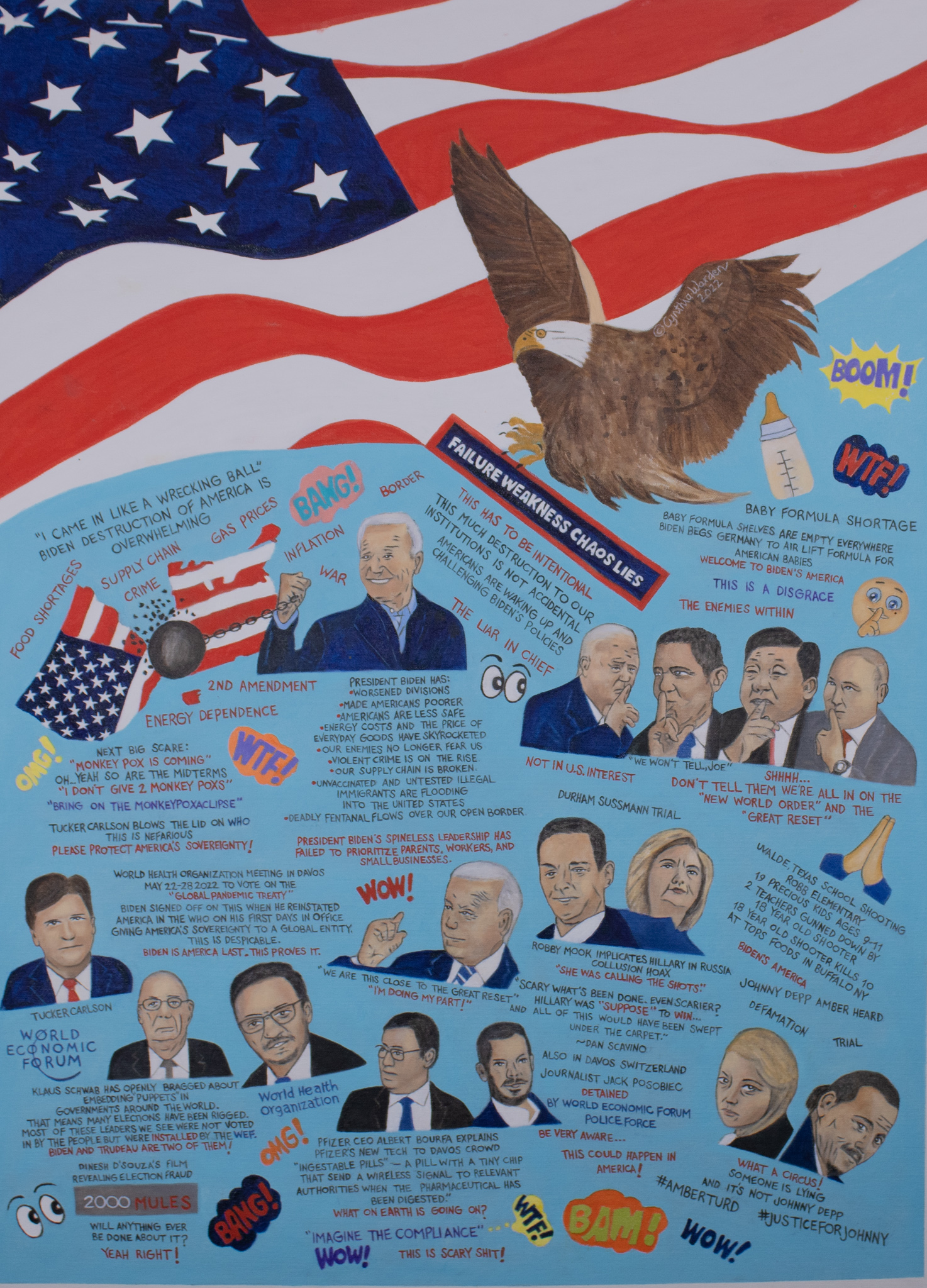 Millions of Americans are seeing that Joe Biden has taken a wrecking ball to our way of life. Is this intentional? So much destruction to our Institutions cannot be accidental. Inflation, Gas Prices, Crime, Border Crisis, Food Shortages, Energy Dependence and the 2nd Amendment are all in shambles since Biden took Office. A Baby Formula shortage is an outrage in America. What is going on? Failure to see the need to solve these issues is a dereliction of duty. It almost seems there are forces behind the scenes making these bad policies for the American People. These policies are NOT in America's interest and who else is involved? Obama ,Xi Putin? "The New World Order or The Great Reset?" Tucker Carlson calls out World Economic Forum in Davos and the possibility of a "Global Pandemic Treaty" Klaus Schwab has bragged about installing puppets in Governments around the World. Pfizer CEO explains new ingestible pills that send a wireless signal to authorities that it has been ingested. "Think of the Compliance!" he said. This is scary stuff! Robby Mook implicates Hillary in Russia Hoax saying "She was calling the shots." and Finally... The Amber Heard/Johnny Depp Trial runs it's course and Johnny gets Justice. Whew!