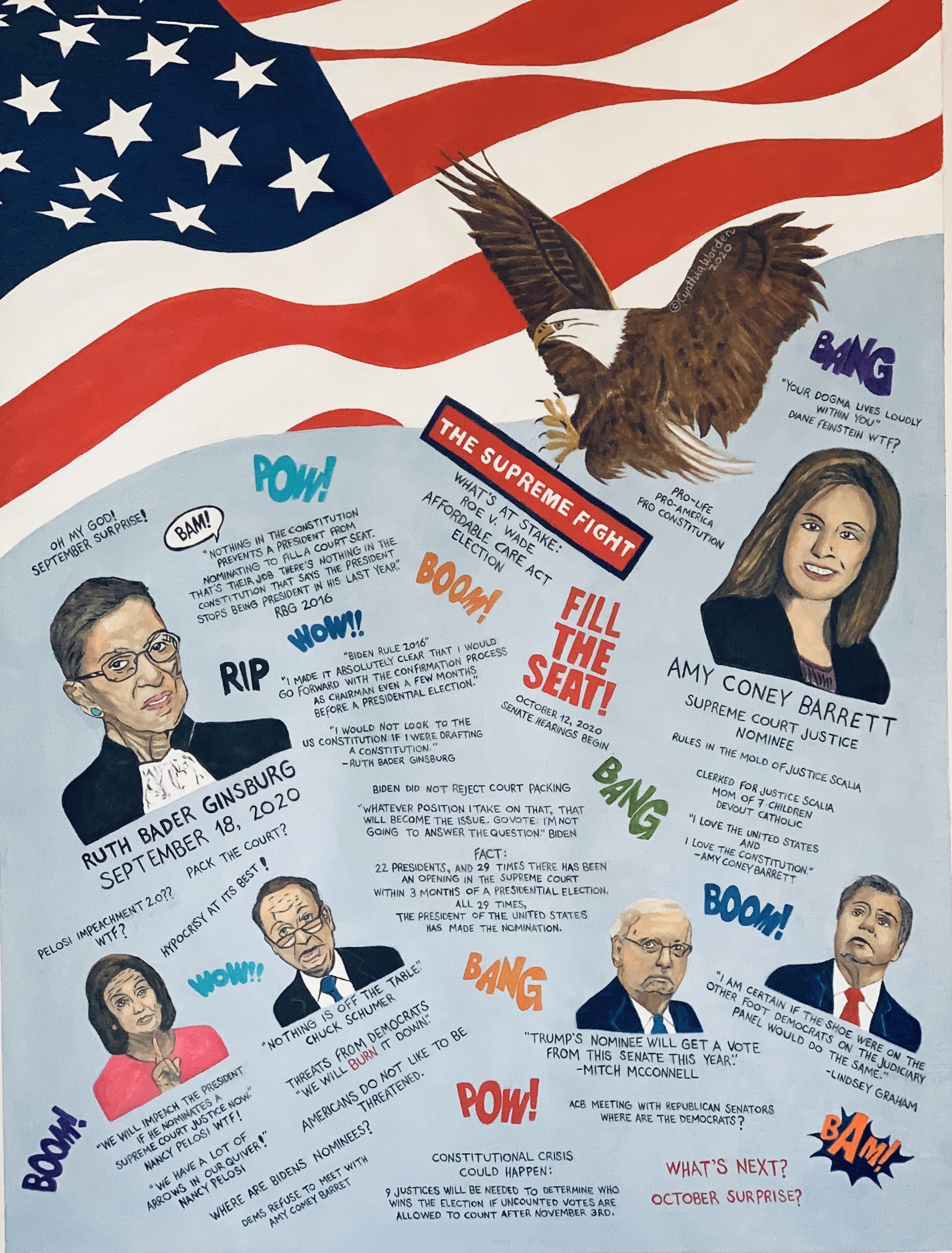 It was announced on September 18, 2020 that Justice Ruth Bader Ginsberg has passed away. September Surprise! Democrats were apoplectic and frantic at the idea that President Trump could possibly nominate and fill the seat of another Supreme Court Justice. Trump nominated Amy Cony Barrett, a Constitutionalist and Conservative mother of seven children. It was important to fill the seat before the Election as fears grew with the idea of Universal Mail in ballotting whichcould prove to be a huge problem and that the Supremes might have to step in over a contested election. There needed to be 9 Justices on the Court to avoid a tie vote. And true to form Nancy Pelosi threatened Impeachment if Trump nominated a Justice before the Election. He did it anyway.